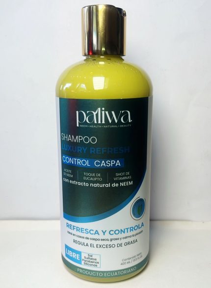 Shampoo control caspa con extracto natural de neem, toque de eucalipto, shot de vitaminas. Refresca y controla, ideal para casos de caspa seca, grasa y calma la picazón. Regula el exceso de grasa Libre de sulfatos, parabenos y siliconas.