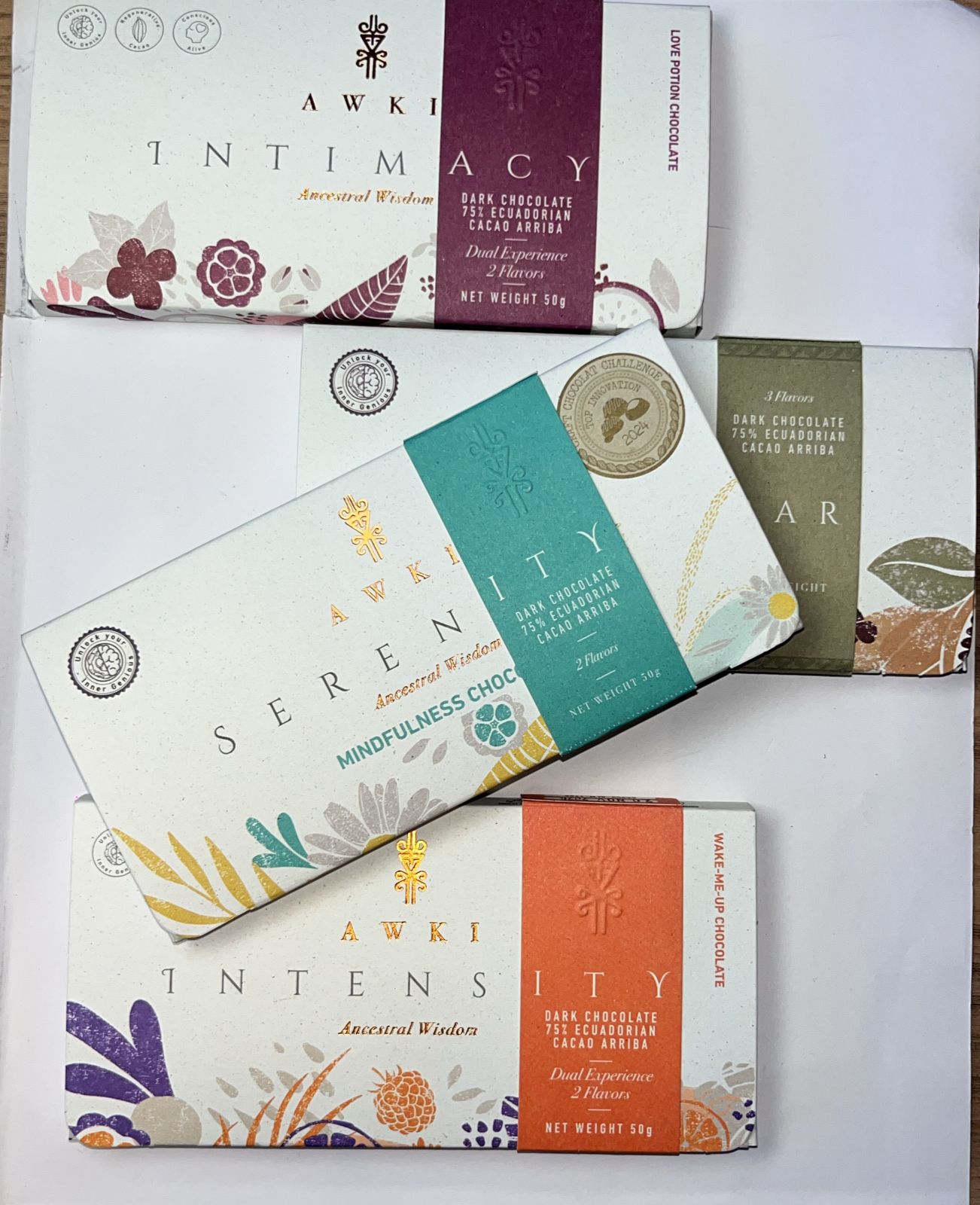 Barra de chocolate al 75% de cacao, endulzadas mínimamente con panela, cada barrar puedes identificar hasta 4 sabores entre hojas y frutos, gracias a su proceso natural se rescata el sabor original de cada ingrediente, producto vegano elaborado con leche de avena.