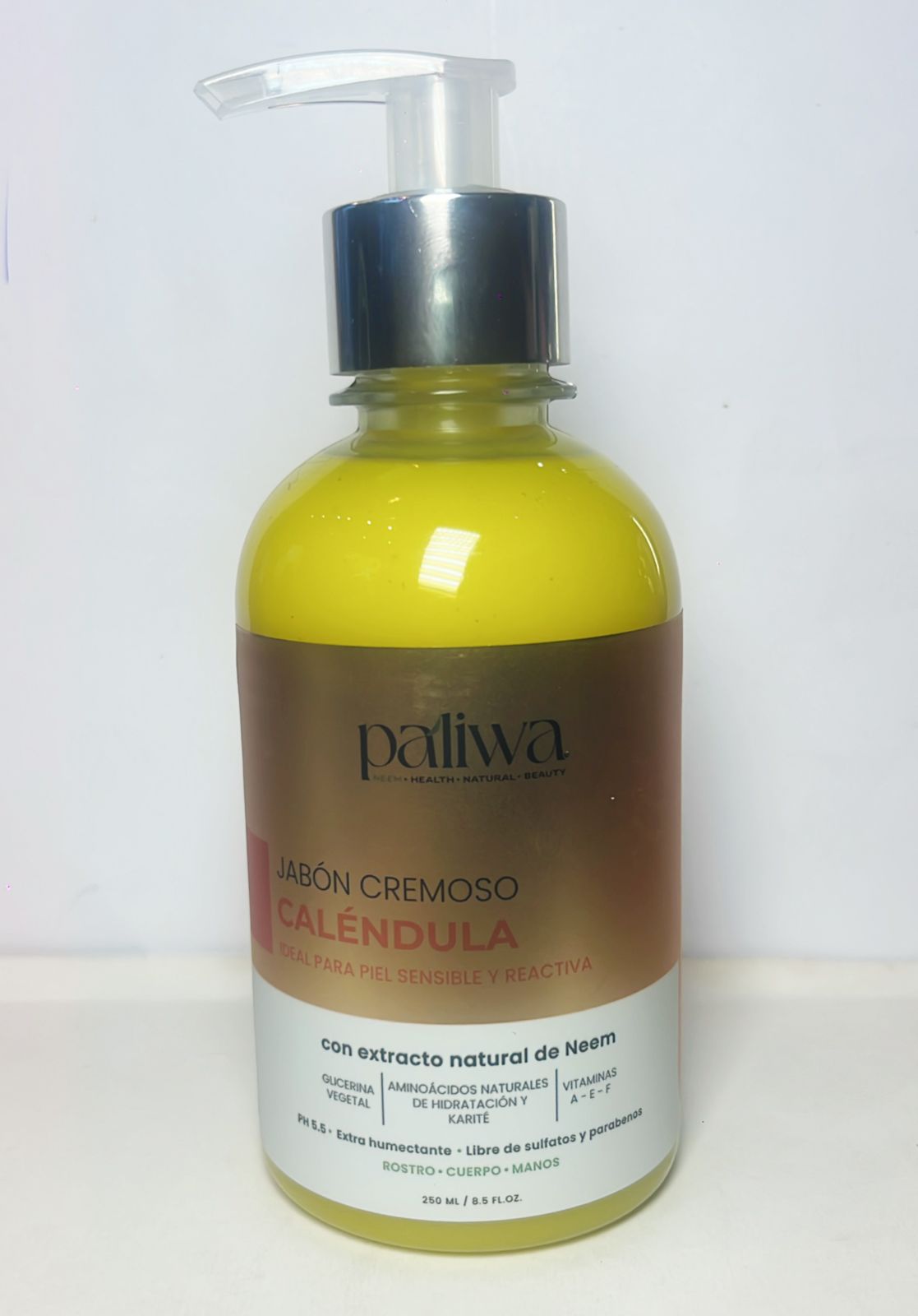 Jabón espumoso a base de caléndula, ideal para piel sensible y reactiva.
